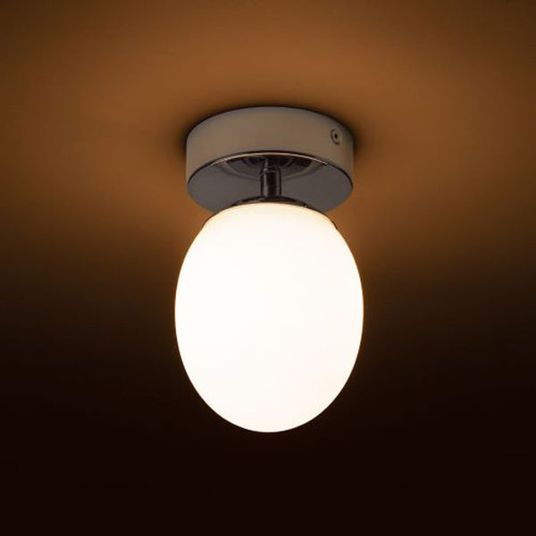Lampa LED sufitowa z kloszem z opalowego szkła. Podstawa sufitowa dostępna w wersji chrom lub matowy nikiel. Polecana do montażu w pomieszczeniach o podwyższonej wilgotności.