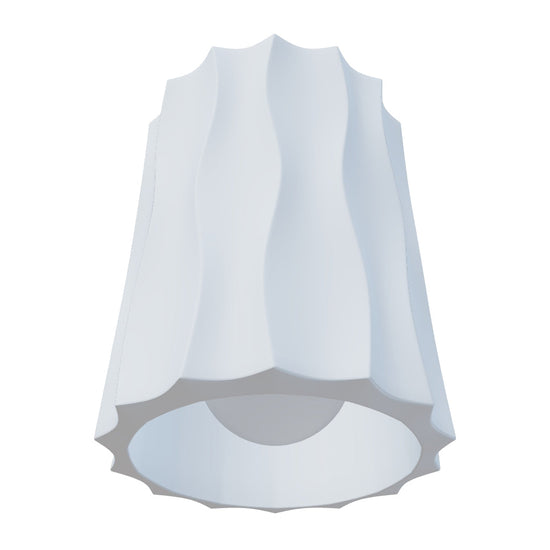 Gipsowa lampa sufitowa o teksturowanej powierzchni z wzorem przypominającym fale, na źródła światła LED o trzonku E27.