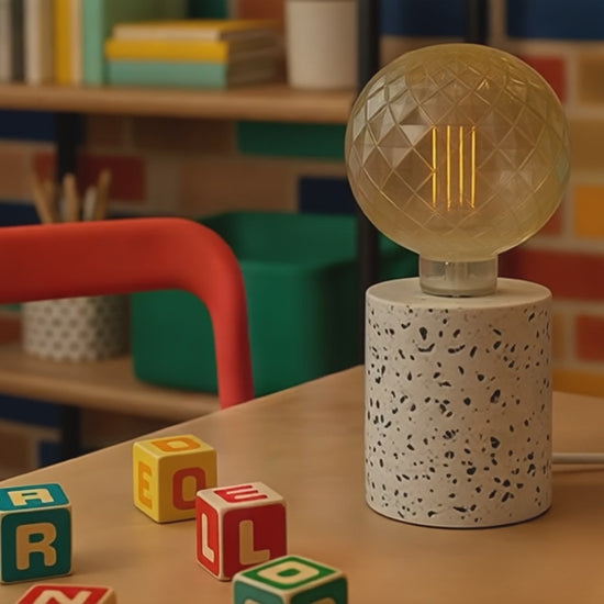 Lampa stołowa w stylu minimalistycznym o cylindrycznym kształcie, którą można połączyć z żarówką dekoracyjną. Każda lampa ma oryginalny design.