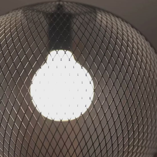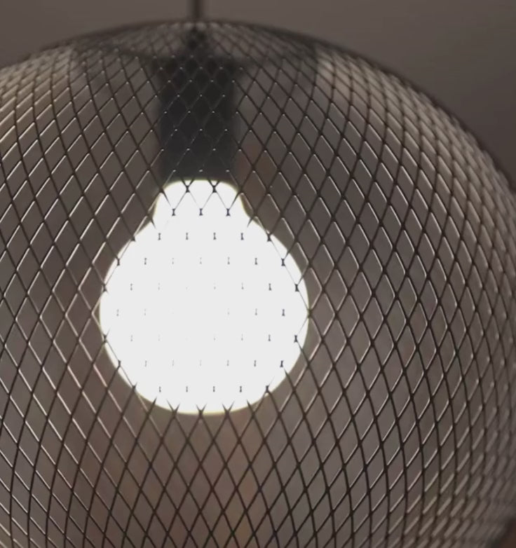 Lampa wisząca w kształcie kuli wykonana z drobnej siatki drucianej, przystosowana do dekoracyjnej żarówki LED o gwincie E27. Maks. średnica żarówki wynosić 9,5 cm.