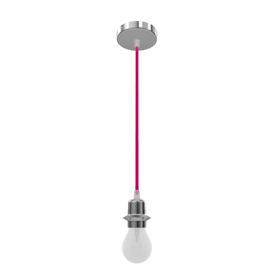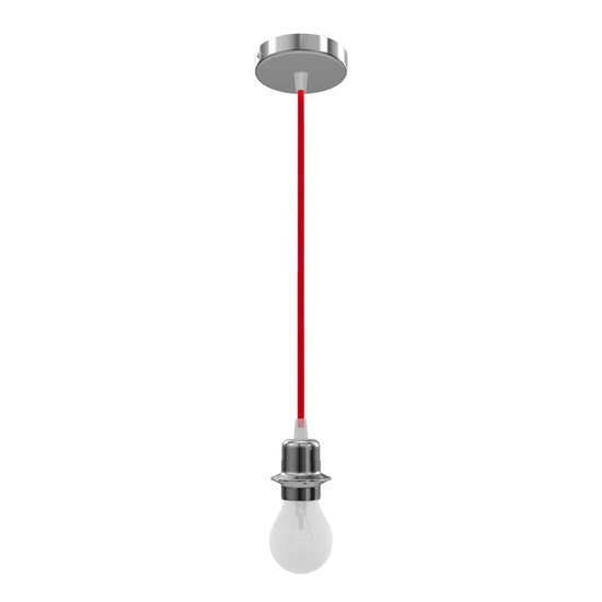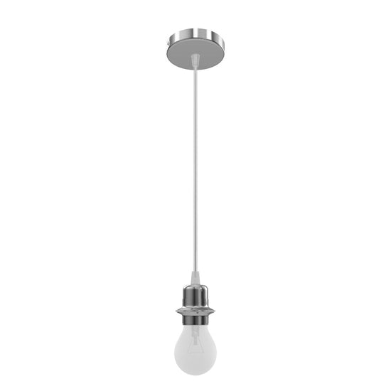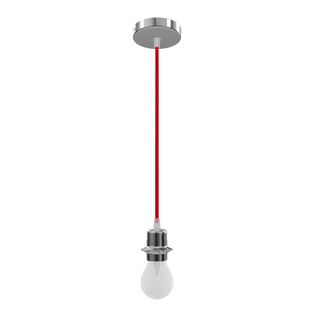 Zestaw wiszący z okrągłą chromowaną rozetą, kablem tekstylnym i metalowym oprawką E27 przeznaczona do zawieszenia lekkich abażurów lub montażu tylko ze źródłem światła. Polecane akcesoria: ARISTA, DELI, JAKARANDA, DOUBLE 40/30, DOUBLE 55/30, ASPRO 40/30, RON 40/25, RON 55/30, RON 60/19, TEMPO 30/19, TEMPO 50/19.