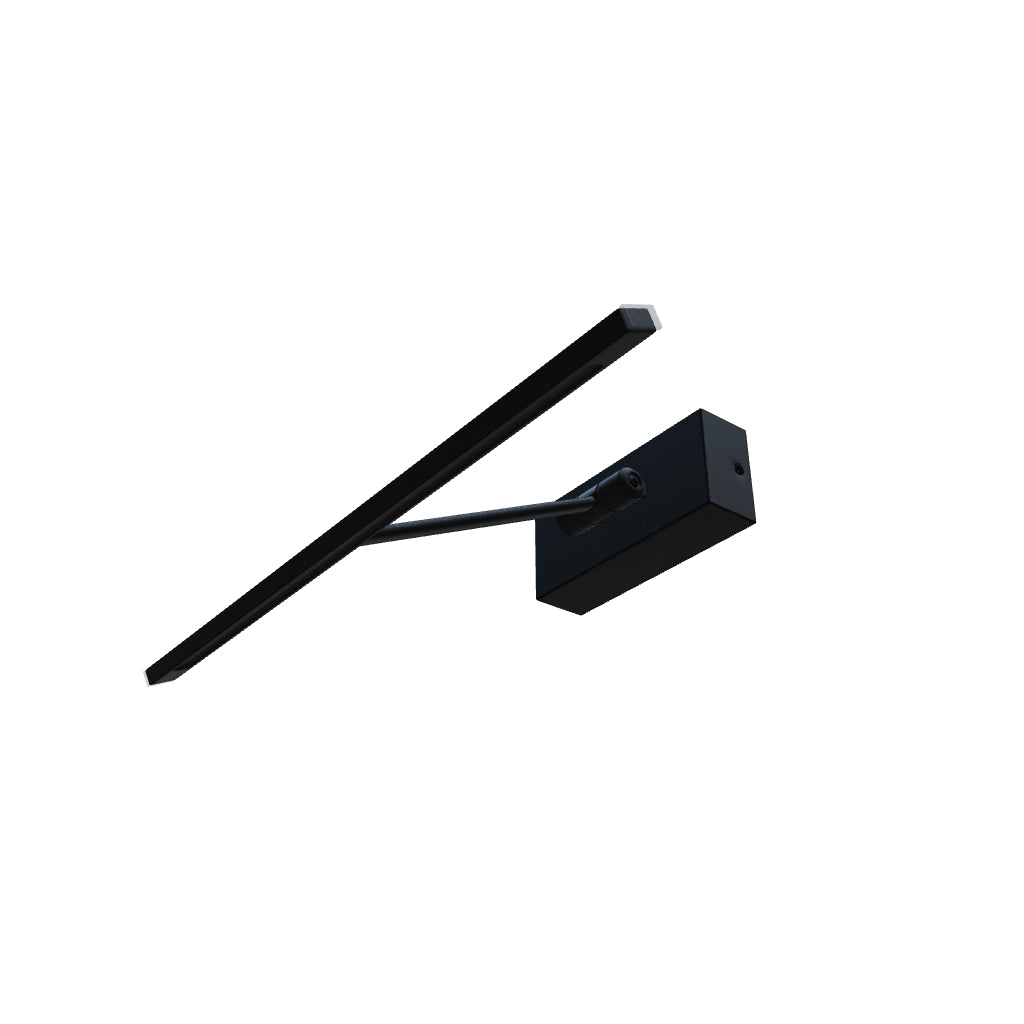 Naścienna lampa LED z regulowanym ramieniem w osi pionowej, idealna do oświetlania obrazów.