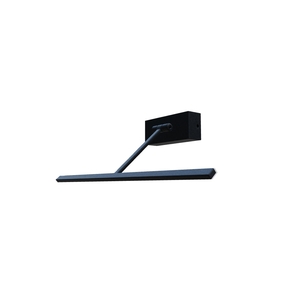 Naścienna lampa LED z regulowanym ramieniem w osi pionowej, idealna do oświetlania obrazów.