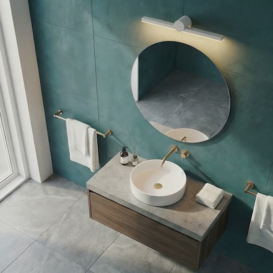 Lampa LED podłużna świecąca w dół odpowiednia do montażu nad lustrem w środowisku o podwyższonej wilogotności.