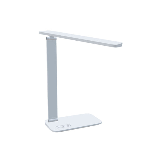 Kompaktowa lampka biurkowa LED z podłużną głowicą, zapewniająca szersze oświetlenie.Wyposażona w ściemniacz umieszczony na podstawie lampy z możliwością trzystopniowego ściemniania oraz regulowaniem temperatury barwowej.