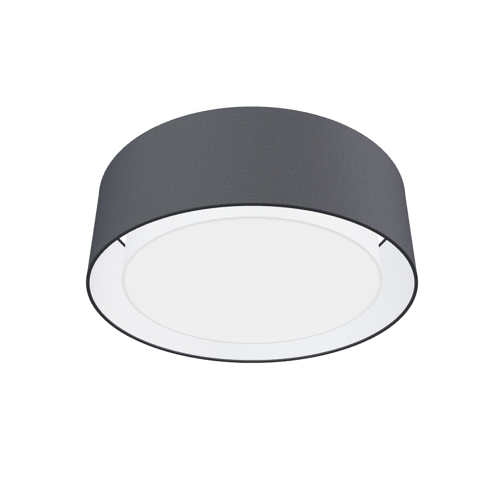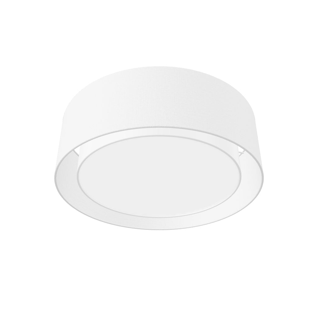 Lampa sufitowa z podwójnym okrągłym tekstylnym abażurem na trzy żarówki z gwintem E27. Abażur wewnętrzny występuje jedynie w białym kolorze.