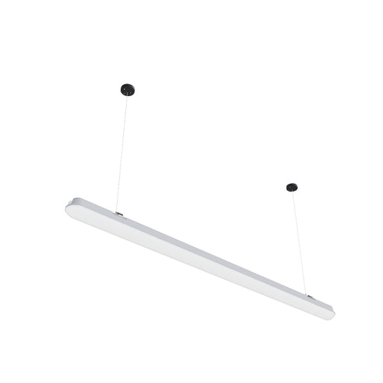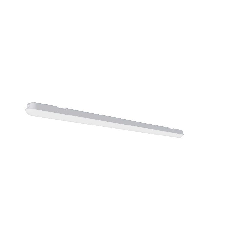 Przemysłowa podłużna lampa LED do montażu sufitowego lub do zawieszenia za pomocą sady G13672. Lampa o wysokiej wydajności i stopniem ochrony IP65. Dostarczana bez zestawu do zawieszania oraz kabla. Możliwość podłączenia szeregowego.