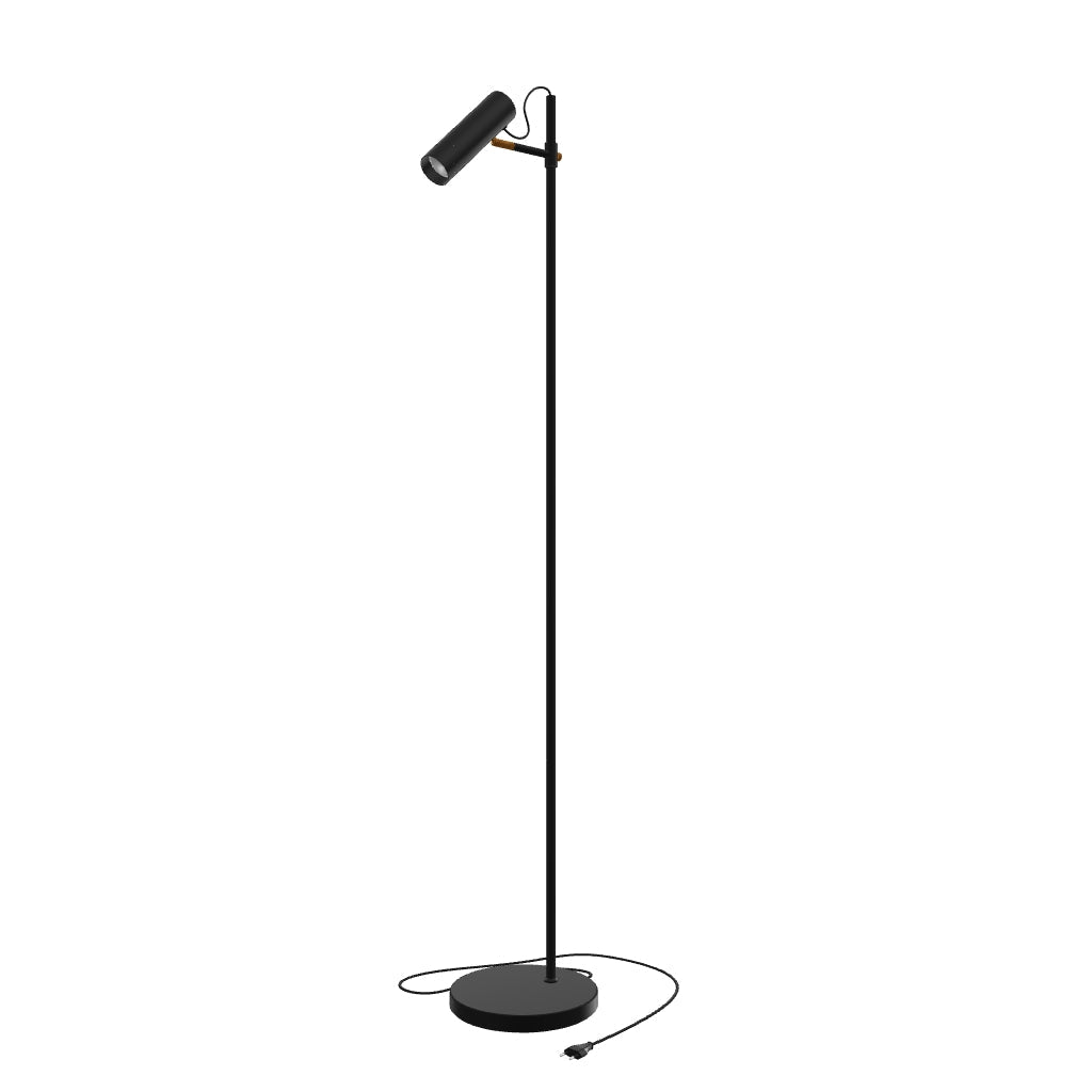 Elegancka lampa podłogowa z cylindrycznym reflektorem na żarówki LED z gwintem GU10. Przełącznik jest umieszczony z tyłu reflektora.